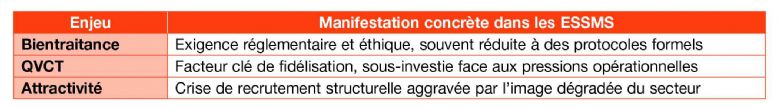 Dans le secteur social et médico-social, la bientraitance est devenue un repère incontournable. Pourtant, sa mise en oeuvre se heurte à une réalité préoccupante : épuisement des professionnels, perte de sens, difficultés de recrutement et organisation laissant peu de place à la réflexion. Cette tension entre exigence de qualité et contraintes opérationnelles dessine une équation à trois inconnues - bientraitance, QVCT, attractivité - que les directeurs d'établissement et décideurs institutionnels peinent à résoudre simultanément :