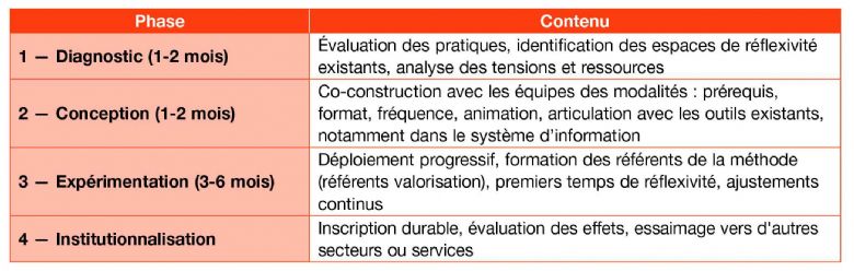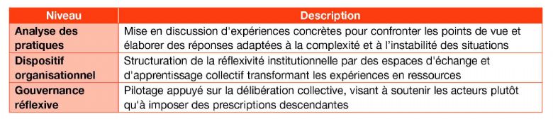 L'engagement de la direction : les espaces de réflexivité ne se maintiennent que si l'encadrement les considère comme stratégiquement prioritaires, non comme des « plus » conditionnels à la charge de travail.